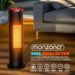 Teesa Heizlüfter 3 Funktionsmodi 2 Heizstufen 1000 W 2000 W Elektrisch Heizung Thermostat