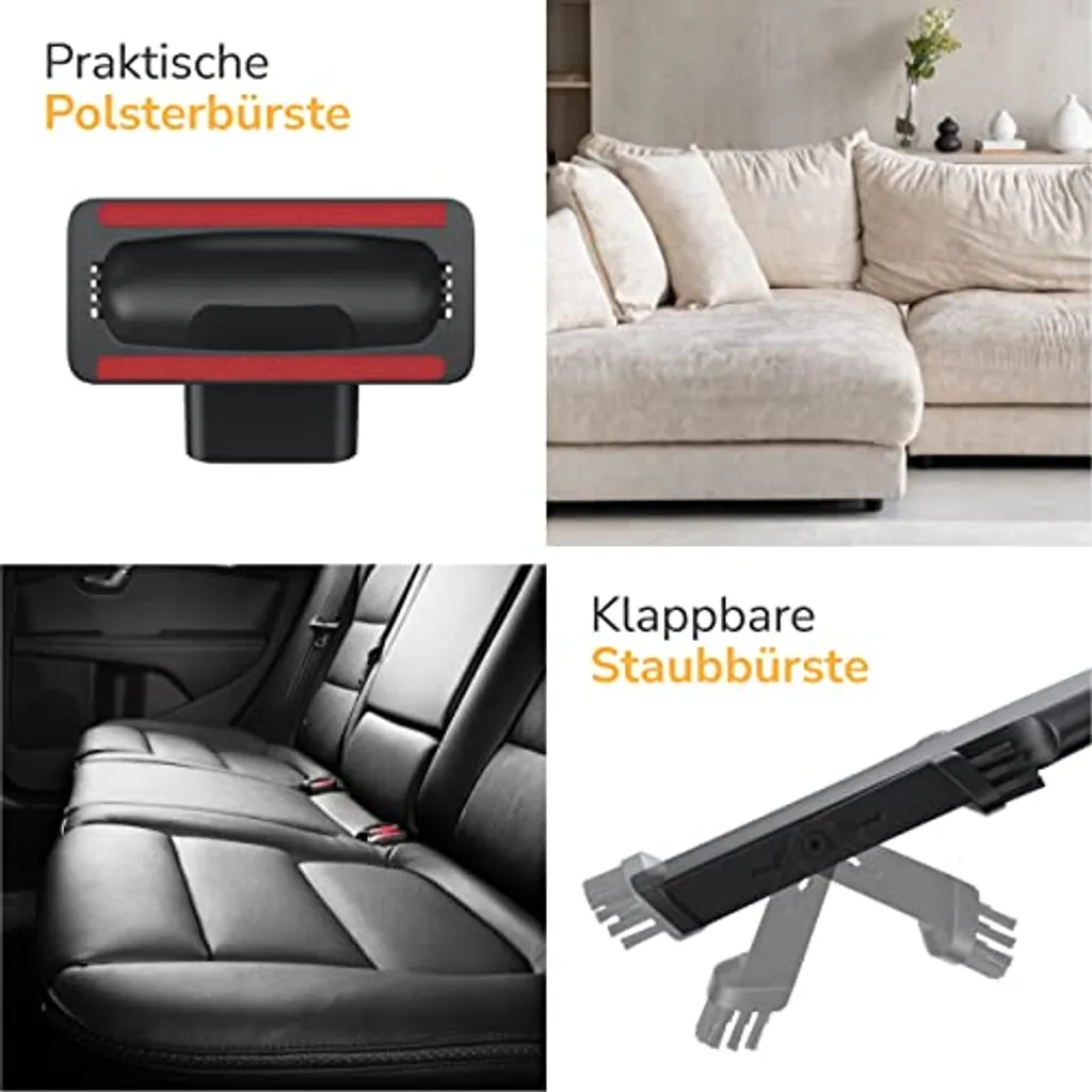 Beginnen Sie mit der Küche und entfernen Sie trockene Lebensmittelreste auf Arbeitsplatten und Tischen in Sekundenschnelle. Die mitgelieferte Fugendüse eignet sich ideal zum Entfernen von Tierhaaren von Sofas, zum Auffrischen von Polstern und Vorhängen und zum Beseitigen lästiger Krümel aus dem Auto – ideal für Vielbeschäftigte, Familien mit Kindern und mit Haustieren.