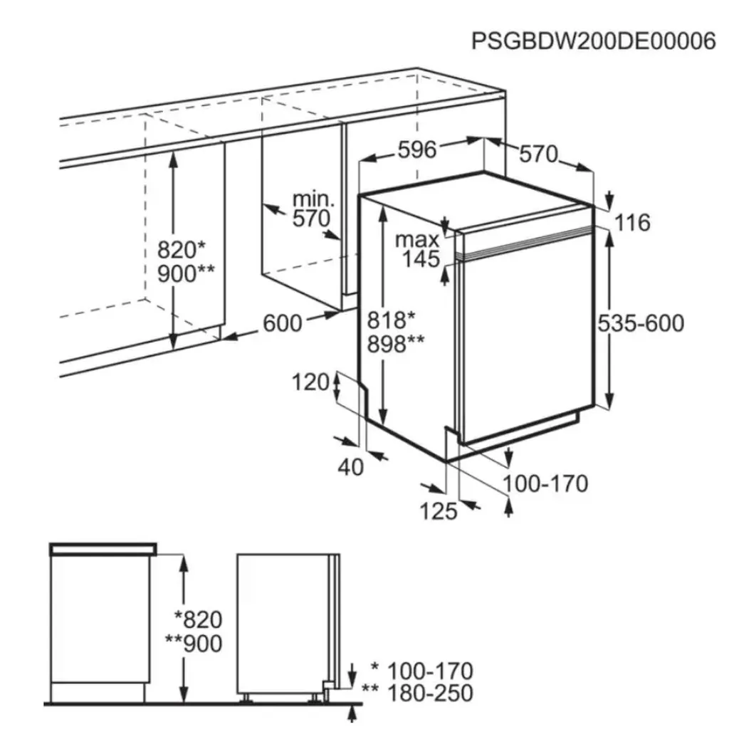 - Einbaumaße (B x H x T): 60 x 82-88 x 55 cm