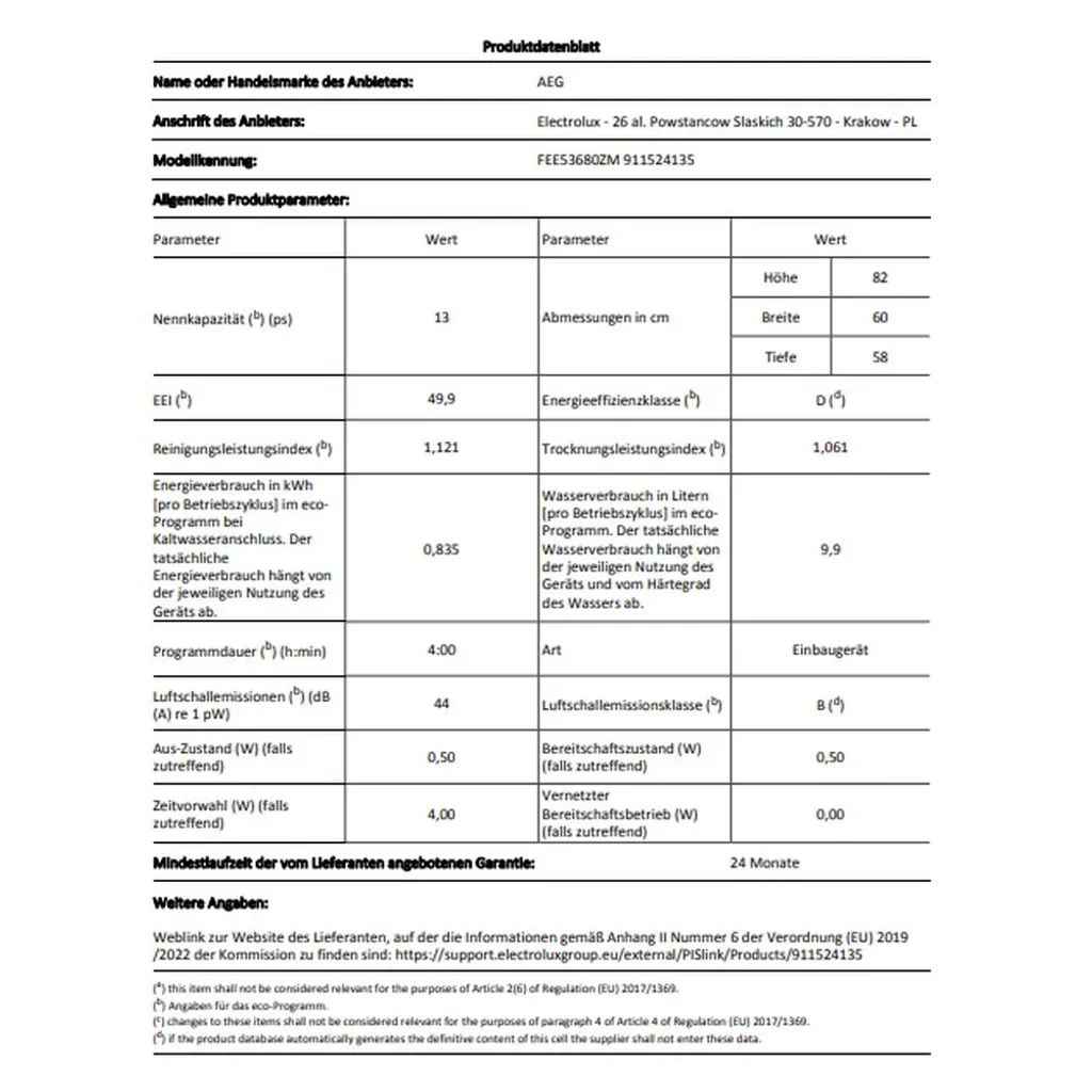 AEG ÖKO FAVORIT FEE53680ZM – Geschirrspüler – eingebaut – Nische – Breite: 60 cm – Tiefe: 57 cm – Höhe: 82 cm – rostfreier Edelstahl