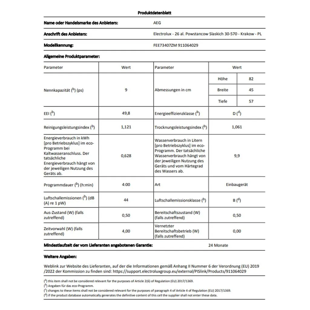 AEG ÖKO FAVORIT FEE73407ZM – Geschirrspüler – eingebaut – Nische – Breite: 45 cm – Tiefe: 55 cm – Höhe: 82 cm