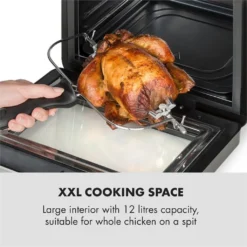 Kompaktes Design: Heißluftfritteuse im Stil eines Mini-Backofens – geringe Außenmaße mit großem Innenraum, Rundum knusprig: 3D Heating System mit 1600 Watt Leistung und Thermostat für 50 bis 220 °C, Vielseitig: 16 wählbare Programme für die verschiedensten Gerichte, z.B. Fish, Vegetables, Cake & Popcorn, XXL Garraum: großer Innenraum mit 12 Litern Kapazität, geeignet für ganze Hähnchen am Spieß, Einfache Bedienung: großes Digital-Panel mit Touch Control und Easy Start-Steuerung