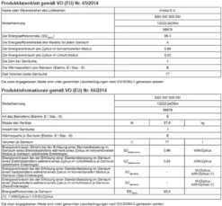 - Energieverbrauch konventionell: 0,99 kWh, Heißluft/Umluft: 0,83 kWh