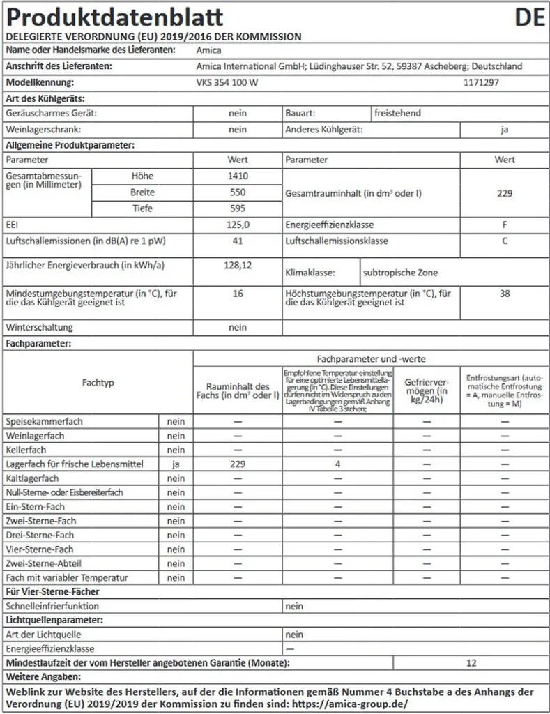 - Energieverbrauch: pro Jahr 99 kWh, in 24 h 0,27 kWh