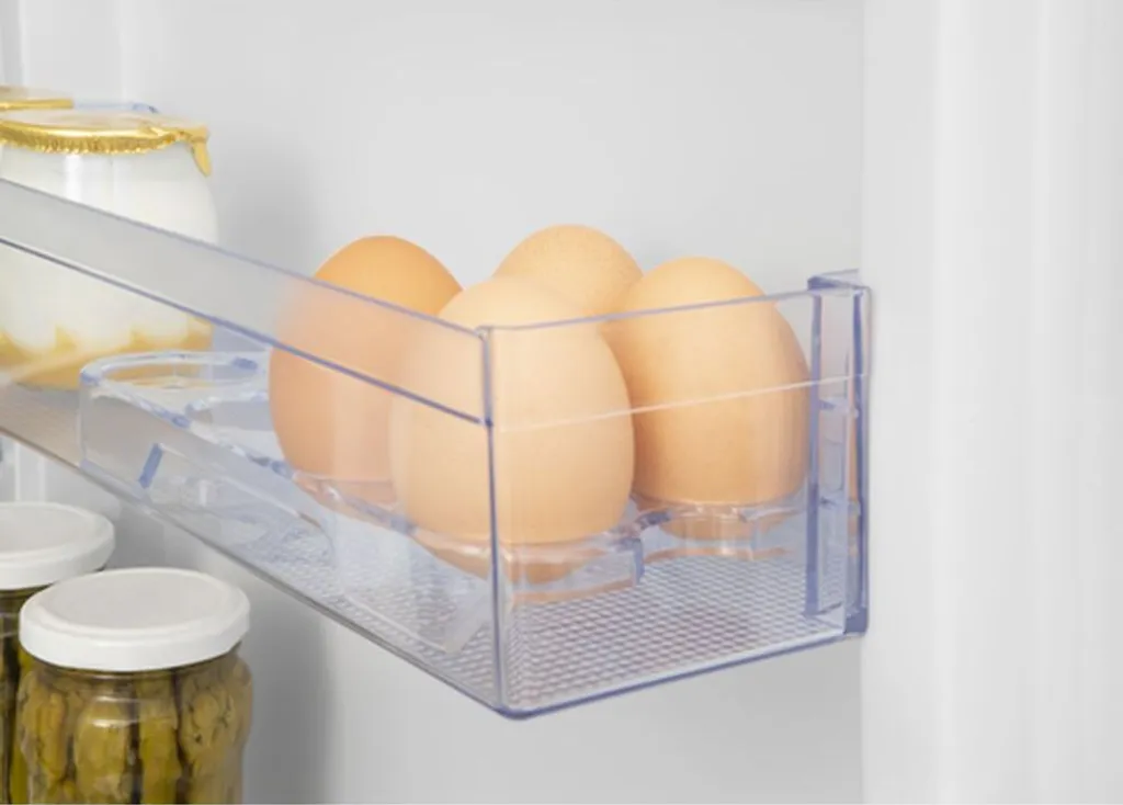 Mechanische Temperaturregelung, 4 Glasablagen, 1 Gemüseschublade, 4 Türablagen, 1 Eiertablett