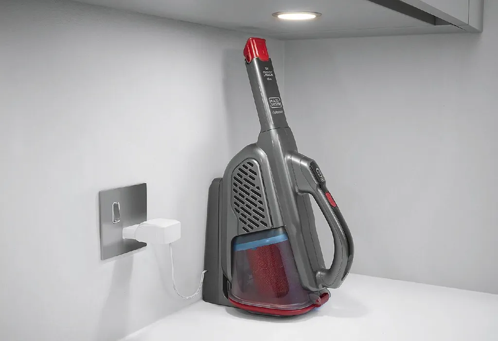Black & Decker Dustbuster. Reinigungsart: Trocken, Schmutztrennungsmethode: Filterung. Staubbehälter Typ: Staubbeutel, Schmutzaufnahmekapazität (Trockenanwendung): 0,5 l, Produktfarbe: Schwarz, Rot. Energiequelle: Akku, Laufzeit: 16 min, Ladezeit: 4 h. Gewicht: 1,1 kg. Menge pro Packung: 1 Stück(e)