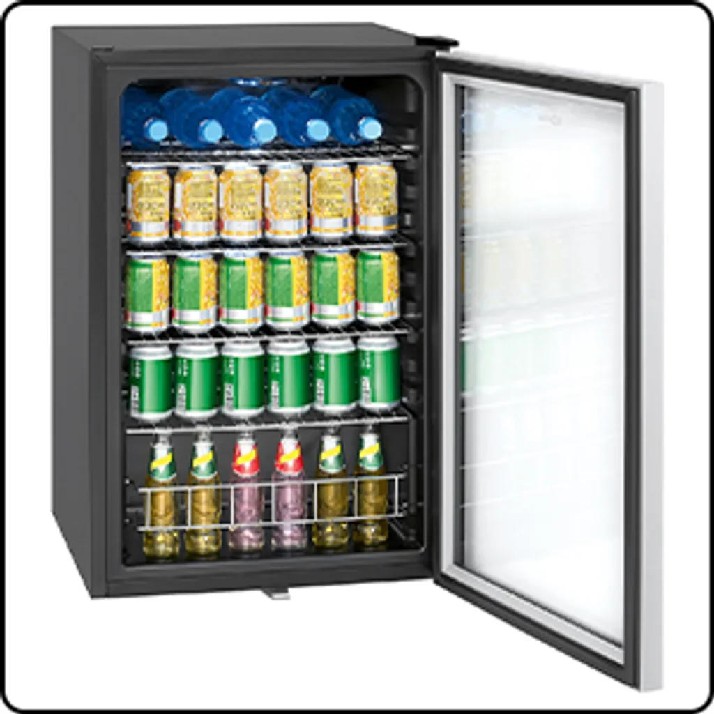 Erfrischung gefällig? — Mit dem KSG 7283.1 können Sie bis zu 131 Dosen à 330 ml (70 x 120 mm) oder 91 Flaschen à 500 ml (70 x 170 mm) problemlos kühl lagern. Der Nutzinhalt beträgt 115 Liter.
