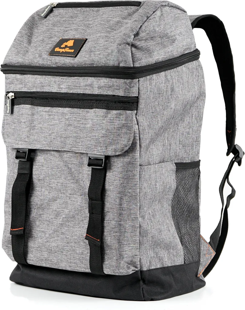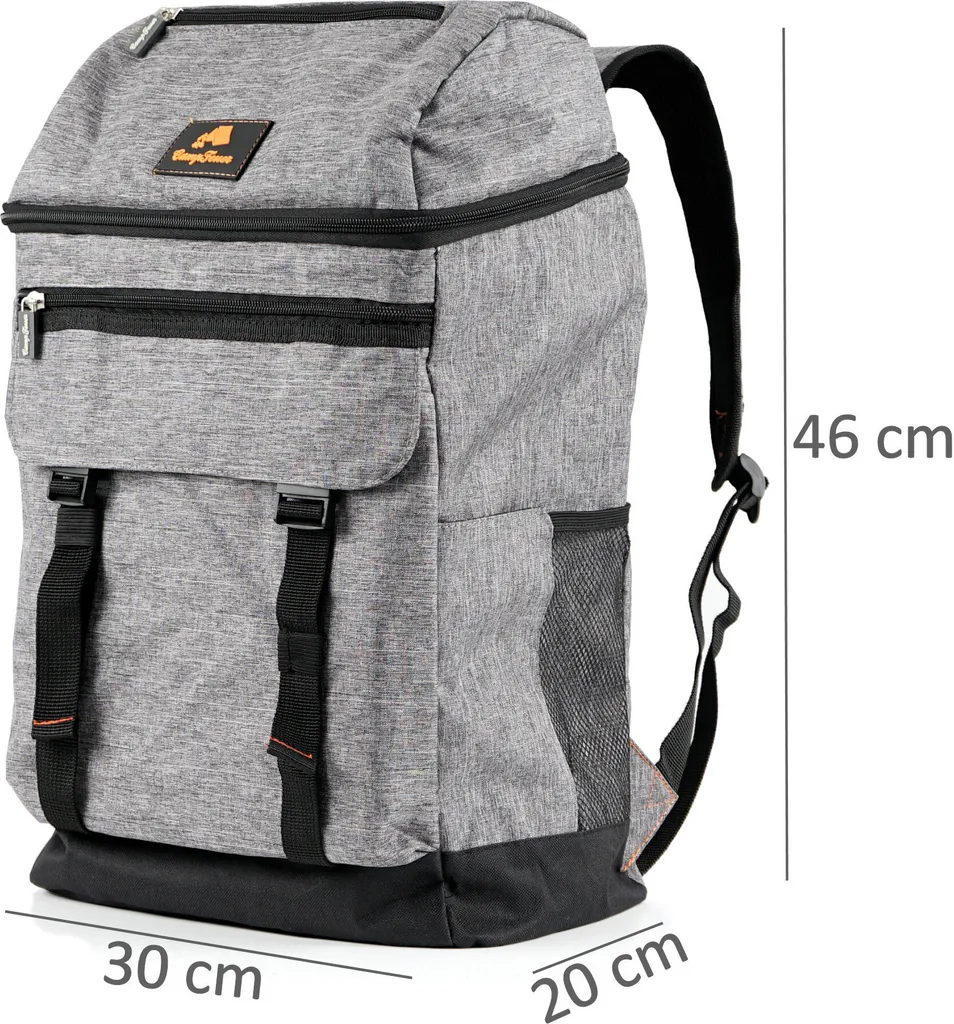 Die geräumige CampFeuer Isotasche kann über den 2-Wege Reißverschluss so weit geöffnet werden, dass man den Deckel komplett zur Rückseite aufklappen kann. Dies erleichtert sehr das Befüllen und Entnehmen von Lebensmitteln. Besonders praktisch ist die zusätzlich Tasche im Deckel, dort können Sie Handy, Schlüssel oder Ihr Besteck verstauen. Bei einer Kapazität von 20 Litern bekommt man ausreichend Essen und Getränke für mindestens 4 Personen verstaut. Weiteren Stauraum bieten die Fronttasche mit Steckschnalle sowie 3 weitere Fächer vorne und seitlich.