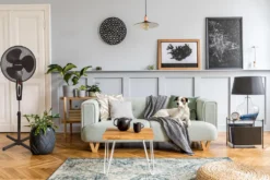 Unser Standventilator verfügt über drei Stufen, die es Ihnen ermöglichen, die gewünschte Luftzirkulation einzustellen. Darüber hinaus können Sie die Rotation des Ventilators zuschalten oder ihn fixieren, je nach Ihren Bedürfnissen. Der Ventilator ist oszillierend, was bedeutet, dass er die Luft in einem breiteren Bereich verteilt und so eine effektive Kühlung ermöglicht.