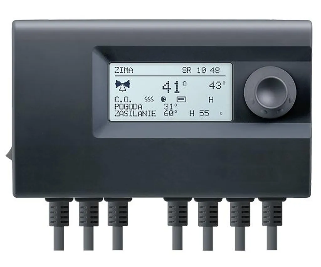 wahlweise der Außentemperatur mittels mitgeliefertem Außenfühler oder Raumtemperatur über einen Optionalen