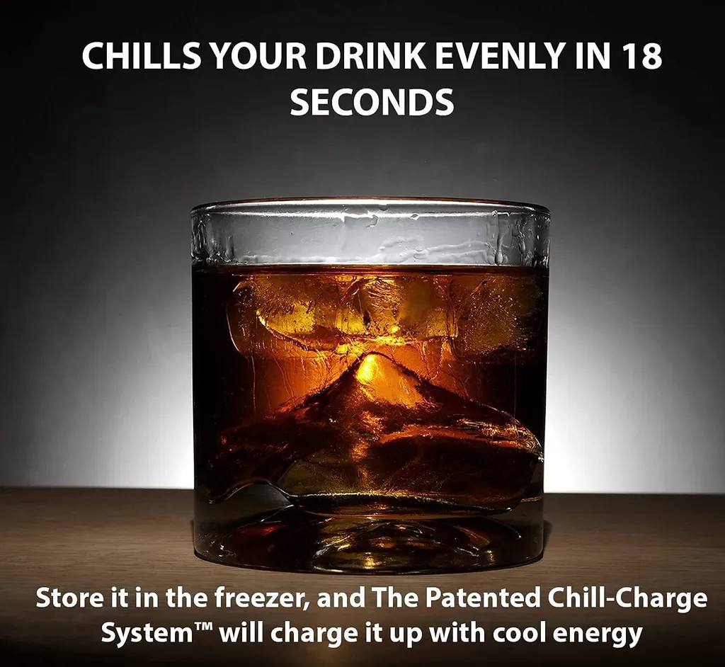 Einzigartige Whiskygläser mit Everest 3D Optik und integriertem Chill-System. Nicht nur für Gäste ein absoluter Hingucker, auch als Geschenk macht sich das 4-er Set hervorragend. Die schweren Gläser können im Gefrierschrank gelagert werden und kühlen Ihren Drink innerhalb von 18 Sekunden auf die perfekte Temperatur herunter. Ideal für Cocktails, Spirituosen und Mixgetränke.