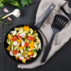 Der Kunststoffgriff ist bis zu einer Temperatur von 180 °C hitzebeständig und bietet durch seine Rutschfestigkeit hohen Komfort beim Braten und Kochen.