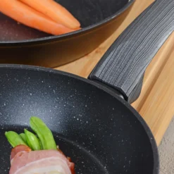 Das Pfannen-Set ist ein Allrounder und für alle Herdarten geeignet, auch für Induktion. Die Bratpfannen sind aus Aluminium gefertigt und übertragen hervorragend die Hitze an das Bratgut. Die Alupfannen haben einen robusten, hitzebeständigen und leichten Aluminiumkörper.