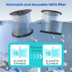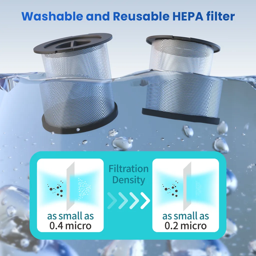 【5-stufiges hocheffizientes Filtersystem】 Der akku staubsauger beutellos verfügt vollständig abgedichtetem 5 stufen filtrationssystem das leicht 99,98% staub und bakterien filtern kann, frische Luft in Ihrem Zuhause, und mit Zwei Waschbar Hepa Filter, bei Bedarf ausgetauscht werden.