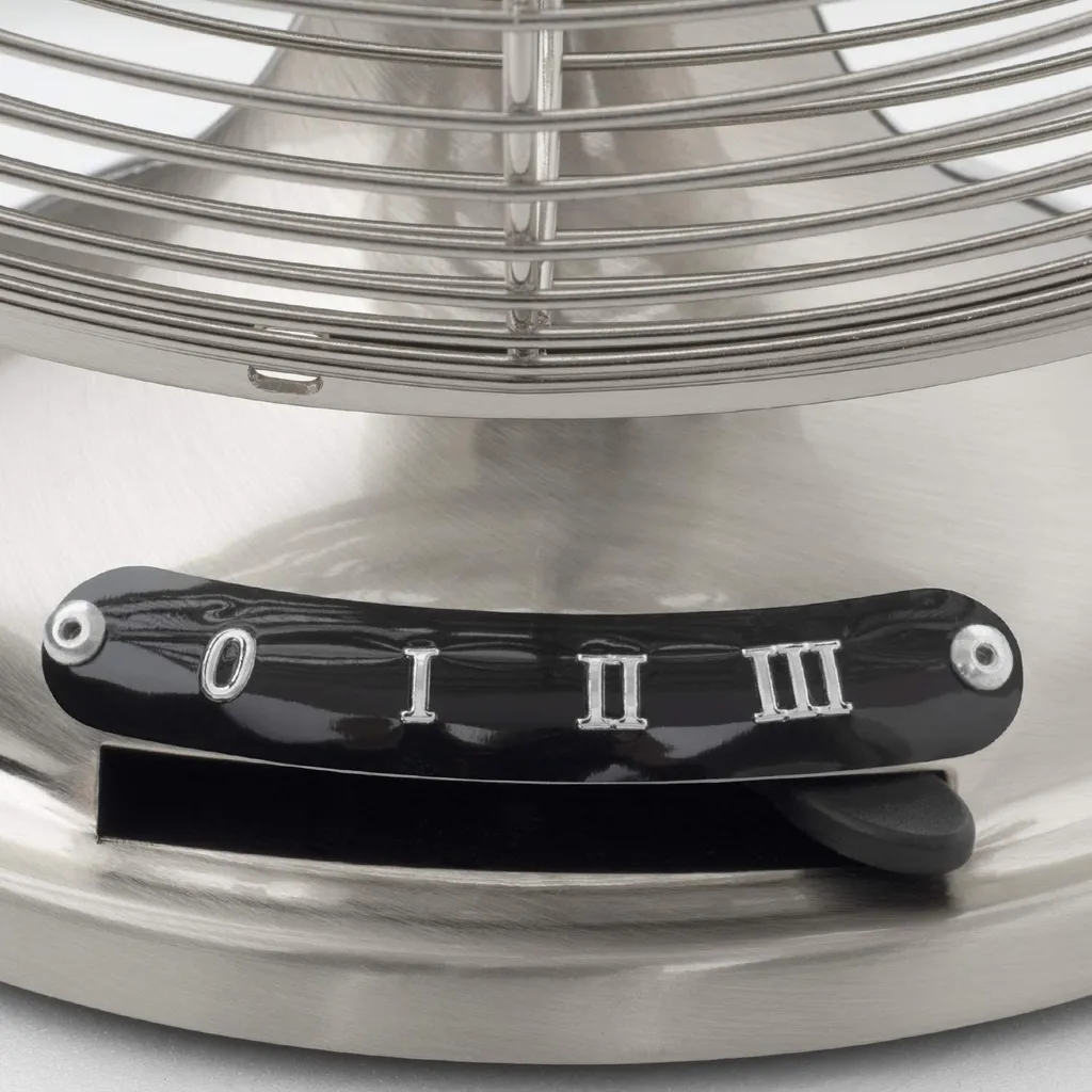 „Der JOE48 Tischventilator von H.Koenig hat ein metallisches und modernes Design, das perfekt für jedes Zuhause oder jeden Raum geeignet ist.