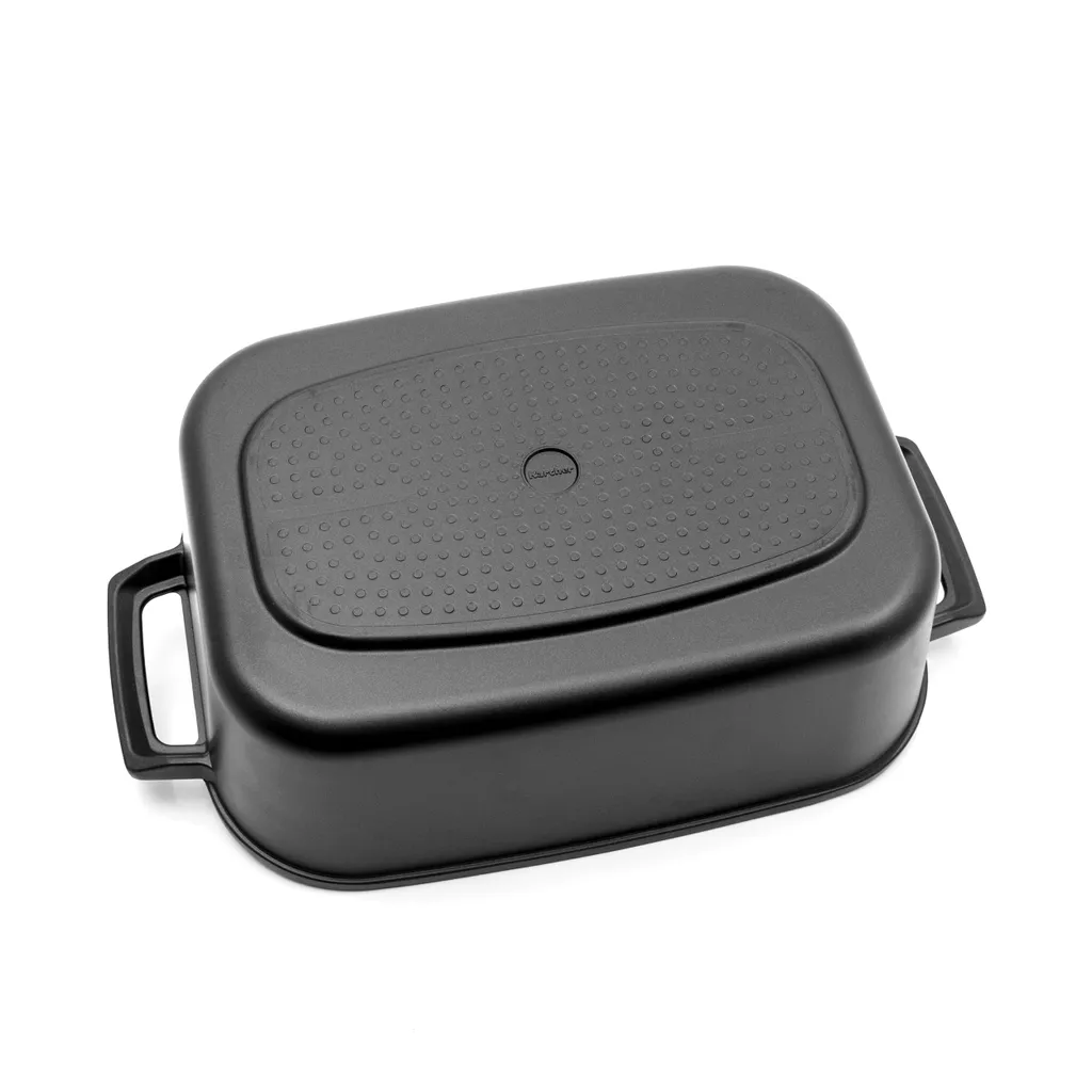 - Material: Bräter aus robustem Aluguss – formstabil, geschmacksneutral & pflegeleicht