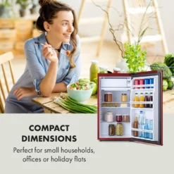 Durch seine kompakten Maße findet der Kühlschranküberall Platz, wo er wird.