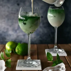 250 ML VOLUMEN – Ein transparentes Glas hat eine Höhe von 207 mm und einen Durchmesser von 79 mm. Der hohe Stiel auf einem stabilen Boden verhindert das Erhitzen des Getränks.