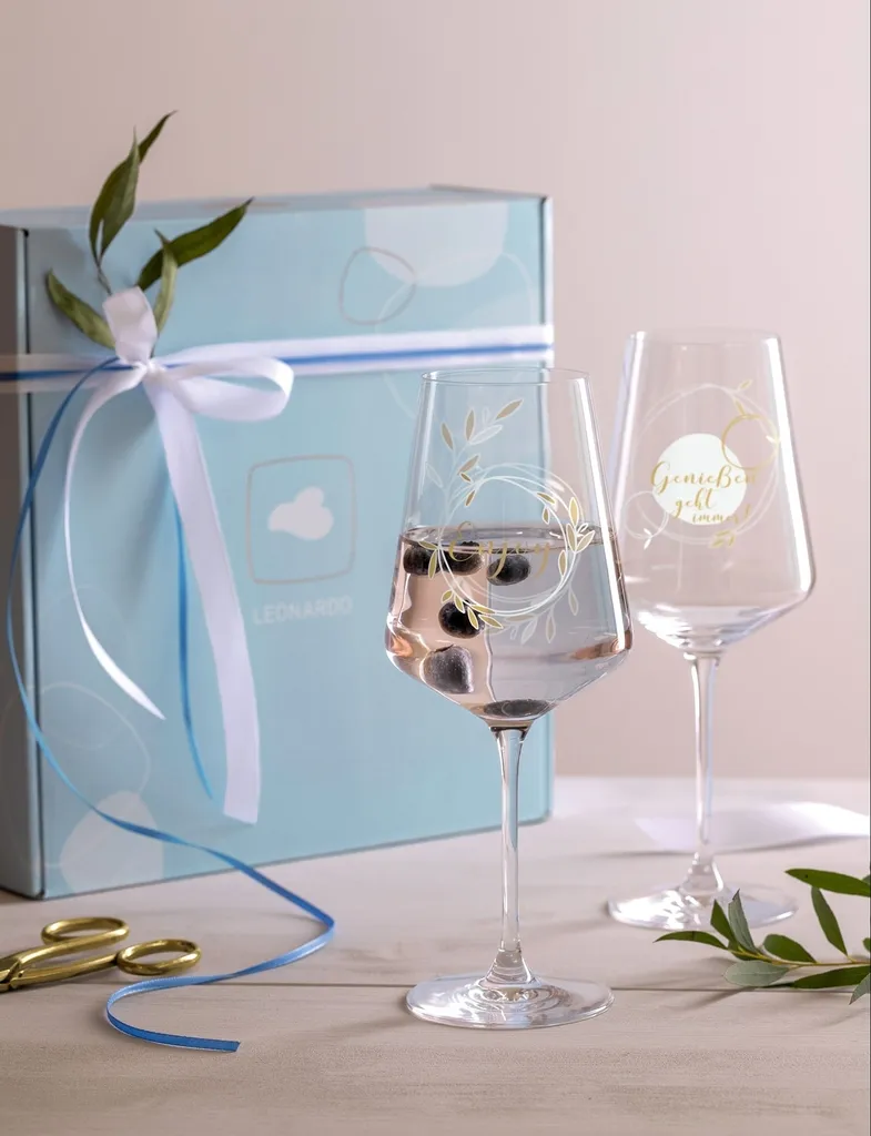 LEONARDO Weingläser mit Motiv „Enjoy“ PRESENTE 200 ml im 2er Geschenkset