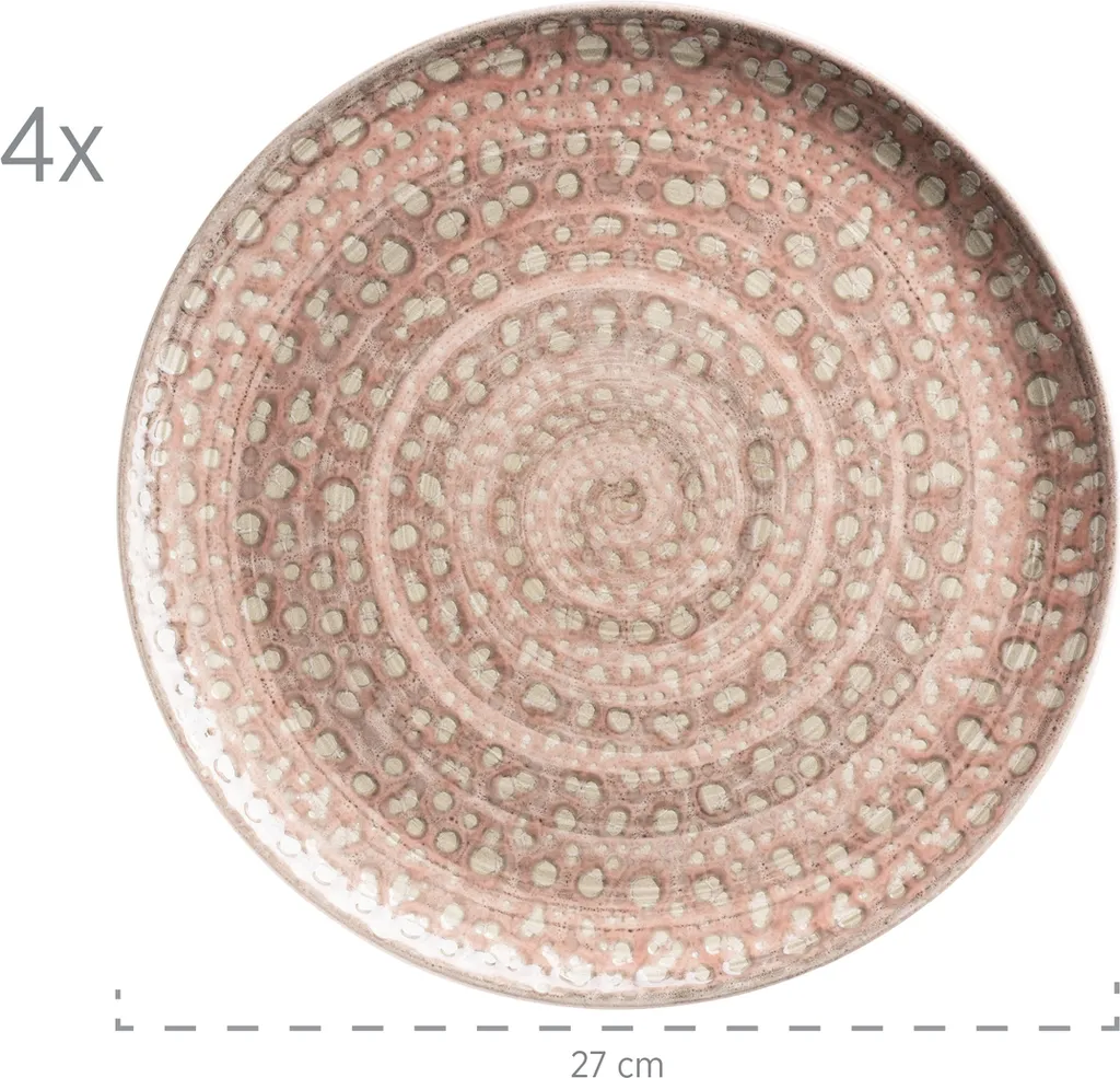 - ‚Dieses absolut außergewöhnliche 16-teilige Geschirrset enthält 4 flache Essteller (Ø 27 cm), 4 Dessertteller (Ø 21 cm), 4 Mehrzweckschalen (Ø 13,5 cm, 500 ml) und 4 Kaffeebecher (350 ml) in der Farbe Rosa