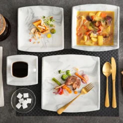 - KLASSISCHES QUADRATISCHES GESCHIRRSET AUS HOCHWERTIGEM PORZELLAN IN MARMOR | Die Blance Serie ist genau wie der Serienname, sie hat das quadratischste und ausgewogenste Gesamtdesign der gesamten Marke. Sind Sie verwirrt von der schillernden Produktpalette? Kein Problem, mit einem klassischen Produkt können Sie nichts falsch machen. Schließlich ist es keine schlechte Idee, Ihrem Kleiderschrank eine Sammlung hinzuzufügen.