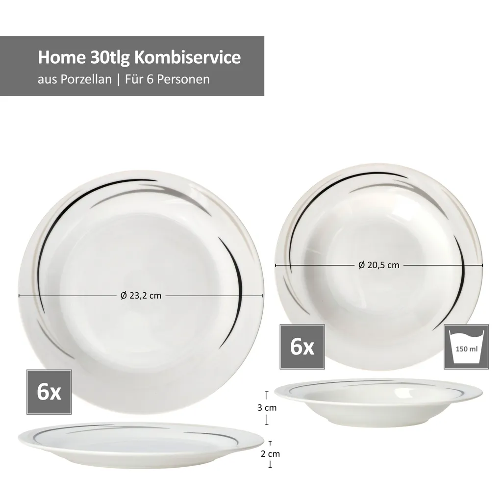 - Home 30-teiliges Kombi-Service | 6x Kaffeetasse, 6x Untertasse, 6x Kuchenteller, 6x Suppenteller & 6x Speiseteller