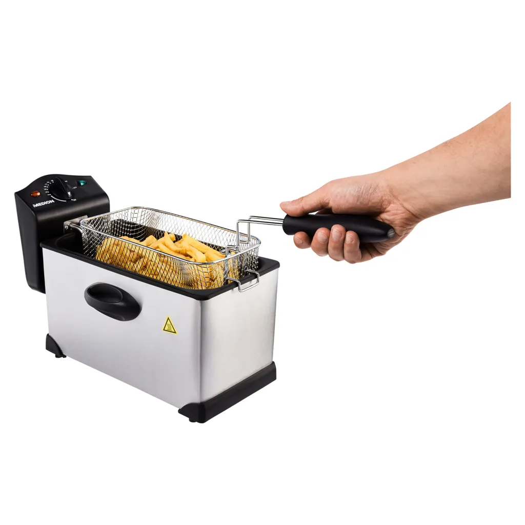 Mit der MEDION Edelstahl Fritteuse bereiten Sie schnell und unkompliziert Pommes Frittes, Kroketten und verschiedene Arten von Fleisch, Gemüse oder Gebäck zu. Lassen Sie sich von neuen Geschmackserlebnissen überraschen – dem Einsatzzweck sind keine Grenzen gesetzt. Hochwertige Verarbeitungsmaterialen und ein durchdachtes, zeitloses Design sorgen zudem für eine unkomplizierte Nutzung und Reinigung.
