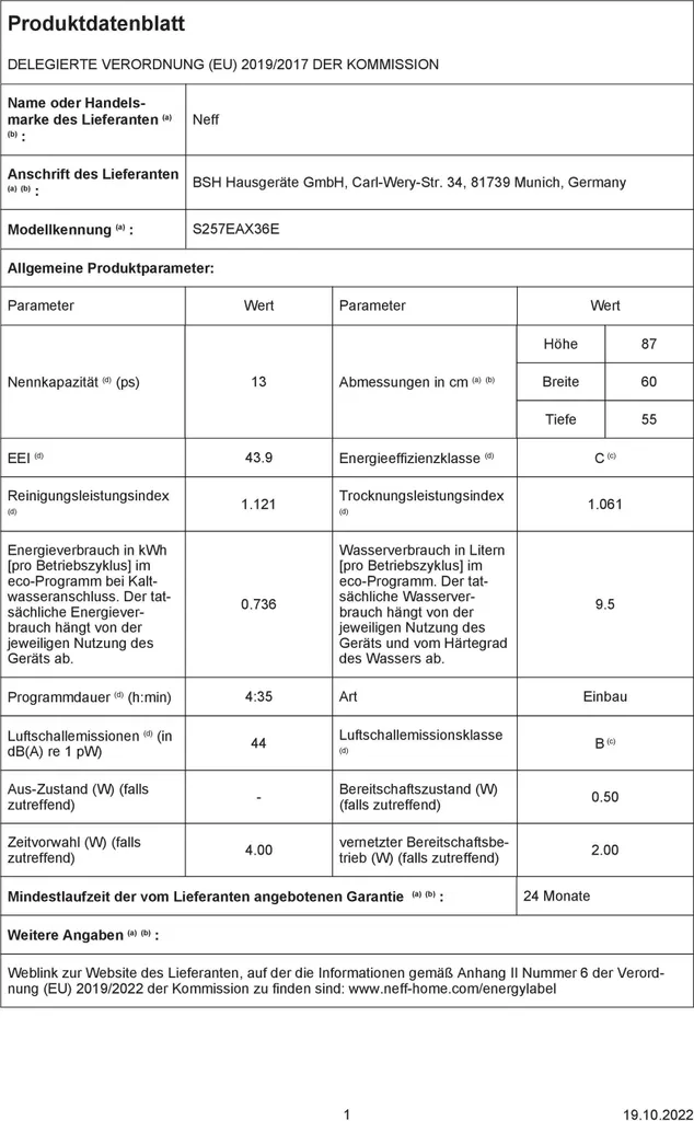 Neff N 70 S257EAX36E – Geschirrspüler – eingebaut – WLAN – Nische – Breite: 60 cm – Tiefe: 55 cm – Höhe: 86.5 cm