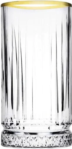 Pasabahce Elysia Golden Touch Long Drink Gläser 4-teiliges Set mit Goldrand; Trinkgläser 4er Set, Longdrink glas, Elegant Design, Cocktailgläser, edler Kristall Optik 280 ml