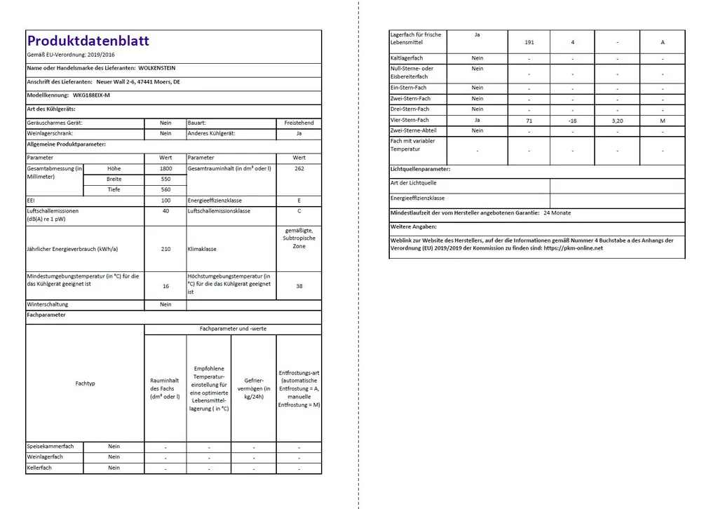 Mit dieser Kühl-/Gefrierkombination von Wolkenstein/PKM liegen Sie damit genau richtig. Mit einem Nutzinhalt (netto) von 262 Liter ist ausreichend Platz für Ihre Vorräte. Die Innenaufteilung ist so konzipiert, dass alles im Blick bleibt. Besonders angenehm ist auch die geringe Geräuschemission von nur 40 dB.