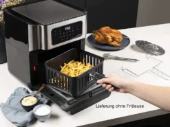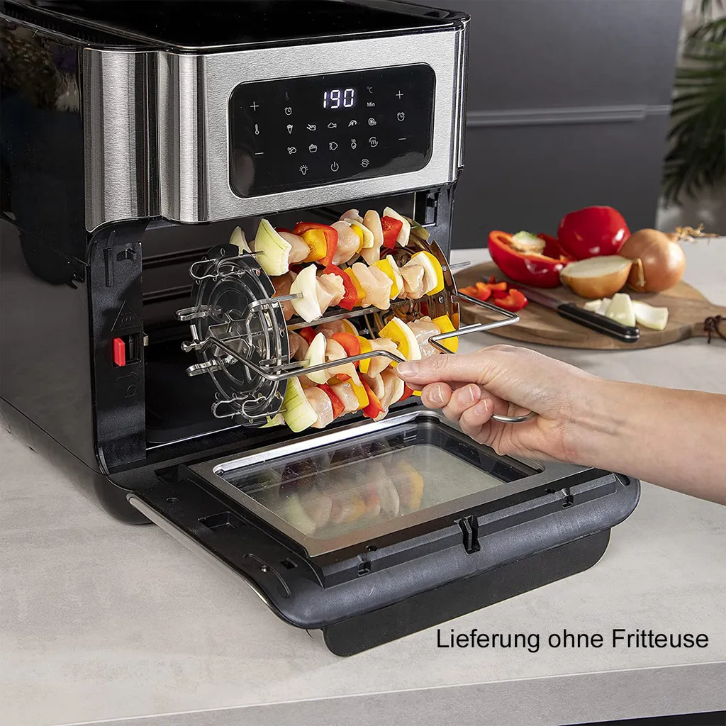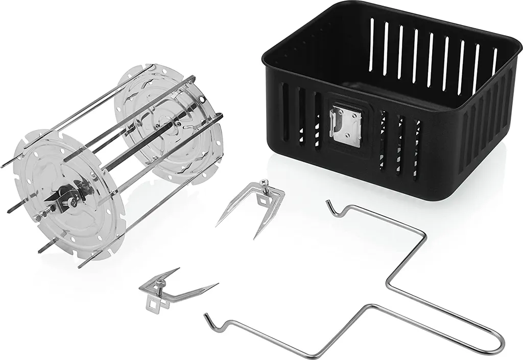 Dann wird sich dieses Zubehörset sicherlich als nützlich erweisen! Das Set besteht aus einem Frittierkorb, einem Spieß-Set, einem Grillspieß und einem zusätzlichen Griff. Bereiten Sie Pommes Frites, Fleischspieße, Hähnchen und vieles mehr zu!
