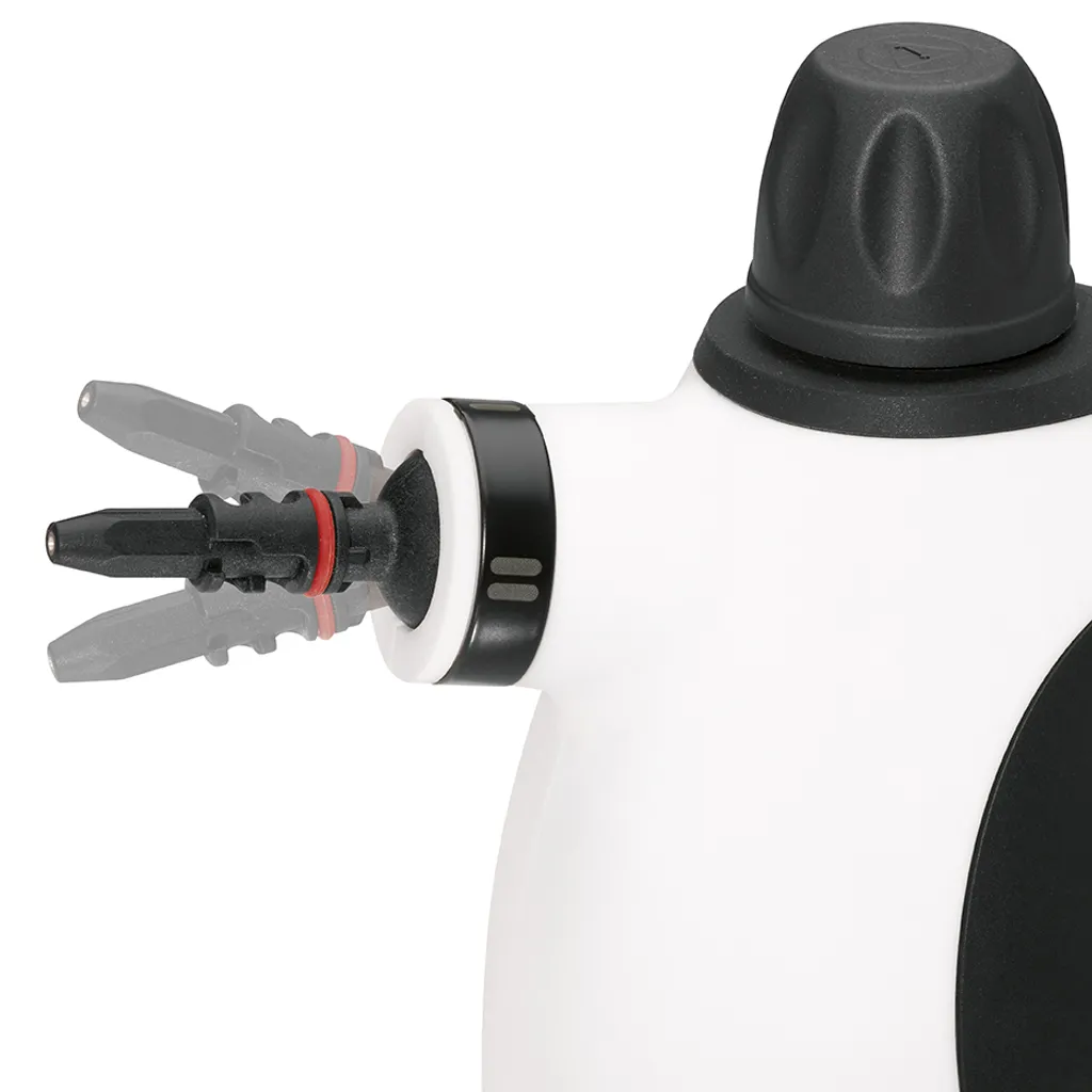 Lieferumfang — Mit insgesamt 9 Zubehörteile sind Sie für eine gründliche Reinigung gerüstet, egal ob es sich um eine große Fläche oder eine kleine Lücke handelt: Bürsten‑, Winkel-, Vlies-, Fensterreinigungs- und universeller Reinigungsaufsatz, 360° schwenkbare Dampfdüse, Schlauch, Messbecher, Trichter