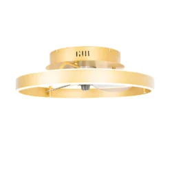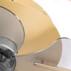 Praktisch, aber mit einem Hauch von Design, das ist Maddy! Sein schlankes Design mit goldener Farbe macht ihn zu einem modernen Deckenventilator mit Licht. Es besteht aus Stahl mit Kunststoff. Maddy hat einen Durchmesser von 50 cm und eine Höhe von 14 cm. Die Montageplatte hat einen Durchmesser von 26 cm und eine Höhe von 5,2 cm. Der Ring hat 2 integrierte LED-Lichtpunkte. Die Ober- und Unterseite des Rings leuchten auf. Mit 1060 Lumen und 2700 – 6500 Kelvin ist sie ein echtes Kraftpaket! Die Beleuchtung ist auch mit der mitgelieferten Fernbedienung dimmbar. Damit schaffen Sie immer die gewünschte Atmosphäre in Ihrem Zuhause. Der Ventilator hat 3 transparente Flügel und kann mit der Fernbedienung eingestellt werden. Setzen Sie auf Kühlung und Atmosphäre mit dem Deckenventilator Maddy!