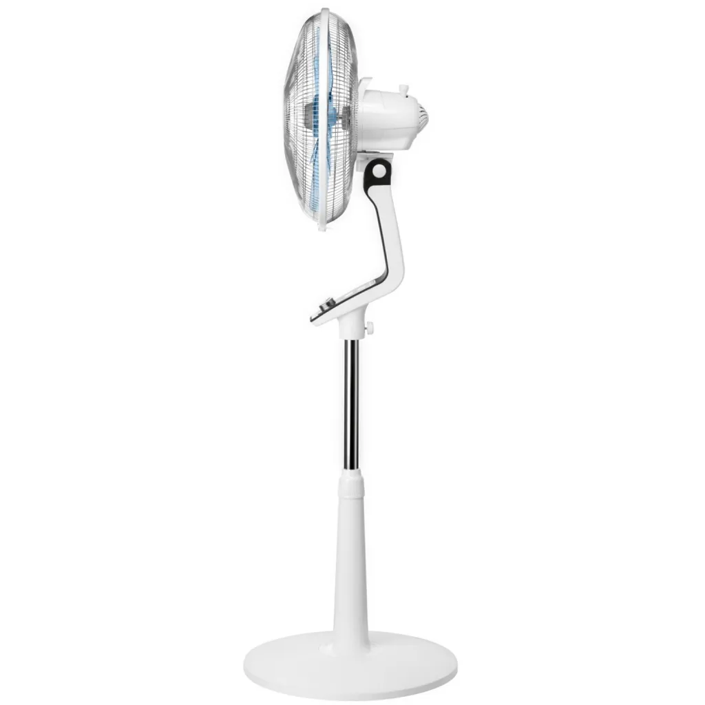 AllgemeinProdukttypLüfterFormfaktorFloor-standingLüfterdurchmesser40 cmLuftmenge480 m3/hLuftstromsteuerungHorizontaler SchwenkFarbeWeißBesondere MerkmaleTragegriff enthalten, einstellbare HöheVentilator DetailLüfterdurchmesser40 cmKlingenanz.5Klingen FarbeHalbdurchsichtig blauEinstellungen, Steuerungen & AnzeigenLüftergeschwindigkeits-Einstellungen Anz.4GeräuschentwicklungsdatenGeräuschpegel (max.)45 dBEnergieversorgungMax. Energieverbrauch70 WAbmessungen und GewichtBreite44 cmTiefe46 cmHöhe104.5 cmGewicht8.6 kg
