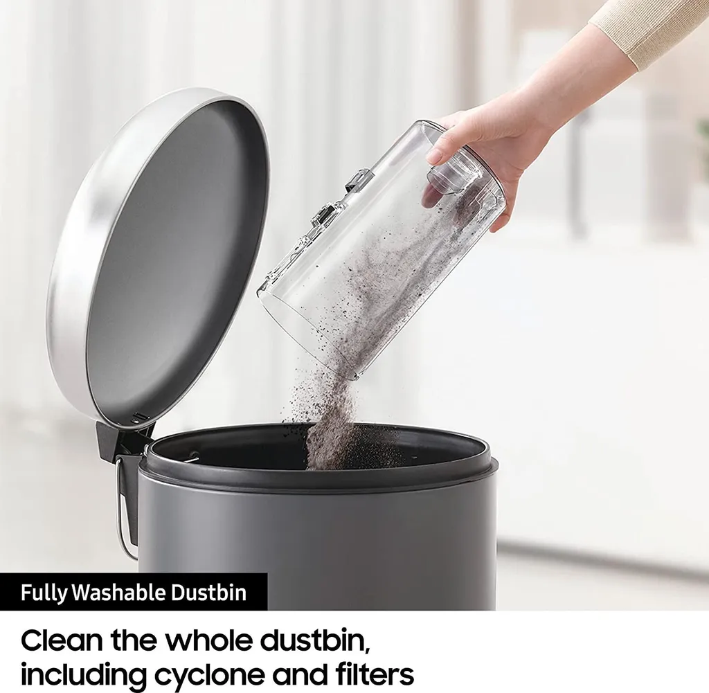 Komfort beim Staubsaugen: Mit seinem leichten Design kann der kabelllose Handstaubsauger ganz einfach gesteuert und bewegt werden. Der Jet 70 tubro ist mit 1,48kg um 21 % leichter als herkömmliche Staubsauger von Samsung. Zudem muss beim Saugen kein Knopf dauerhaft gedrückt werden, was auch deine Finger beim Saugen entlasten kann.