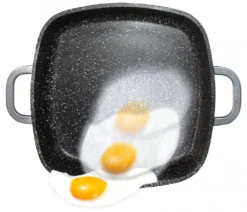 Im Set enthalten ist neben dem Smell Well Glasdeckel mit Siebfunktion außerdem die STONELINE® FUTURE Eckpfanne mit 24 x 24 cm. Die Eckpfanne hat mit 6,7 cm einen extra hohen Rand und ein Fassungsvermögen von ca. 3,0 Liter und eignet sich dadurch hervorragend für alle Brat- und Schmorgerichte!