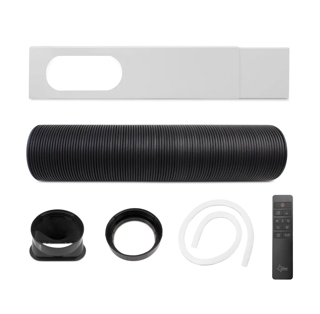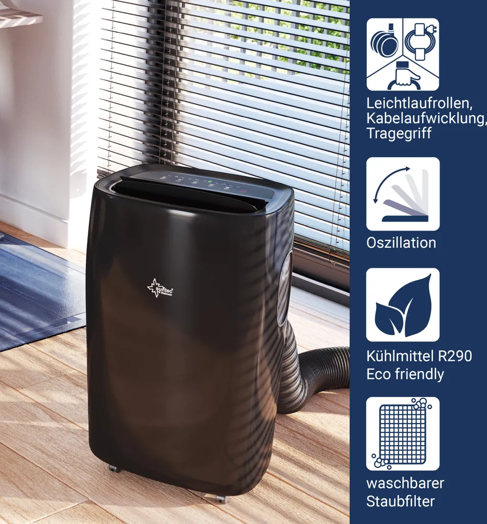 - HIGHLIGHTS/LIEFERUMFANG: Abluftschlauch mit Adaptern, Staubfilter, Fensterschiebeleiste, Drainageschlauch, Leichtlauf-Rollen, Fernbedienung (exkl. 2x AAA)