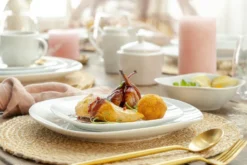 Das ist das Highlight dieses Tellersets. Die Runde, leicht eckige Form ist universell einsetzbar und lenkt nicht vom Essen ab.