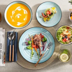 - Nature Farbe Element. Das vancasso Navia Geschirrset enthält viele Naturfarben, wie Blau, Grün, Grau, Beige und usw. Einfach zu erinnern an die Natur Elemente Himmel, Meer, Wasser, Flora, Erde und Stein, was Ihnen eine stilvollen Eleganz und bequeme Erfahrung verleiht.